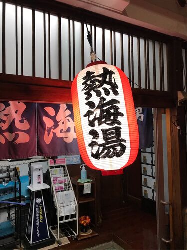 飯田橋駅近くで用事を済ませた後、ご夫婦に、ご夫婦がピッカピカに手入れした熱海湯さんにも会いたくなりお濠を越えて、神楽坂を少し登って脇に入ってと銭湯散歩。 今日は何か雰囲気が違うと思い、正面に立ち熱海湯さんを見つめる。 軒先に吊るされた屋号が…